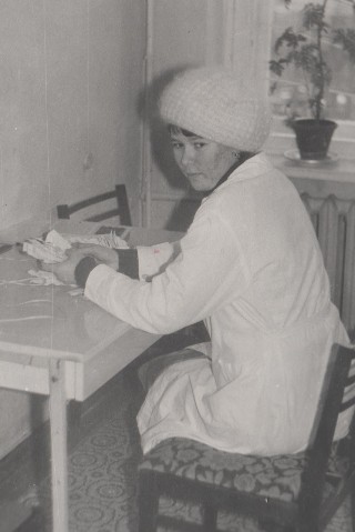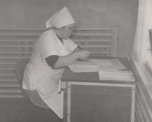 Фельдшер Левина Лидия Павловна в своем кабинете.Ответственность за санитарно-профилактическое состояние дома лежит на ней. Ведет учет и расселение проживающих. Ветераны ВОВ благоустраиваются в первую очередь. |