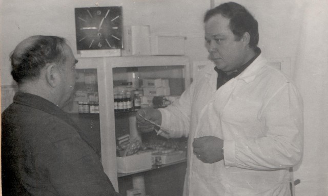 Проживающий Павлов Степан Георгиевич - ветеран ВОВ на приеме у дежурного мед.работника Солохина Василия Николаевича. Медицинский пункт работает груглосуточно. |