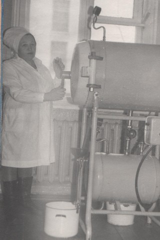 Автоклавная работает регулярно с 1972 года. Стерилизуется перевязочный материал, инструментарий.Специализацию по работе автоклавной старшая мед. сестра Юршевич М.С. прошла на базе Боровичской ЦРБ |
