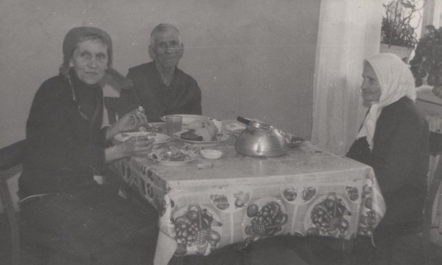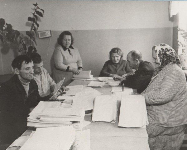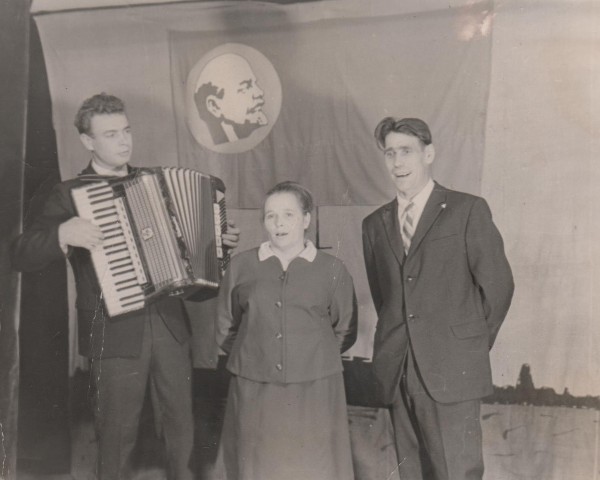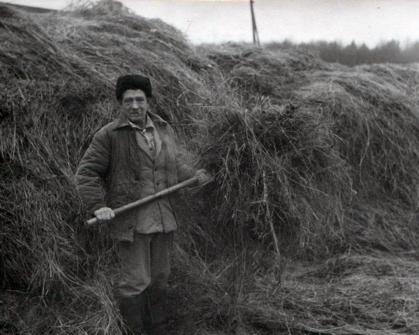 В 1984 году не смотря на плохие погодные условия работники и проживающие заготовили для животных 45 тонн сена и 30 тонн силоса. Этого достаточно, что бы прокормит в стойловый период крупный рогатый скот: 12 коров, телят, быка и 2 лошадей. На снимке: Филиппов Василий убирает привезенное на корм сено. |